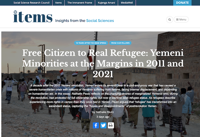 From Citizen to MigrantaiysusFeb 2, 20221 min readAIYS Board Member Nathalie Peutz has recently published an online article on Yemeni minorities and refugees in the past decade. Check it out here.