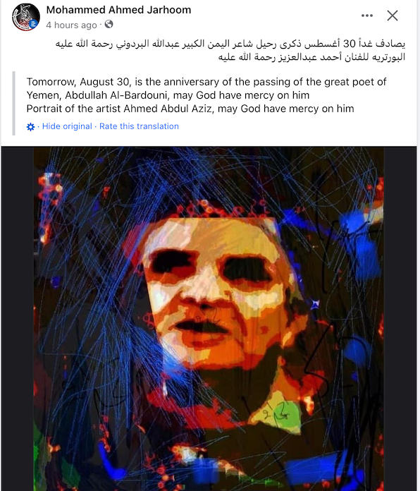 Yemeni Poet Abdullah al-BaradduniaiysusAug 29, 20241 min readFrom the Facebook Page of Mohammed Jarhoom.For the poetry of this great contemporary Yemeni poet, click here.